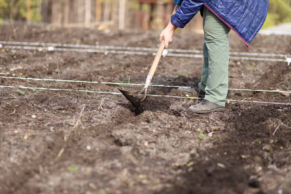 Как только почва начнет оттаивать, следует заняться её подготовкой. Удалите с участка остатки прошлогодней растительности, если не сделали этого осенью, а также мусор и сорняки. Если почва достаточно мягкая, взрыхлите ее, чтобы улучшить структуру и аэрацию для последующих посадок.