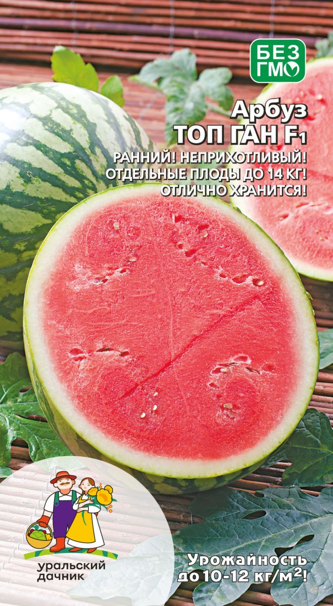 Масса до 10 кгРаннеспелый сорт. Период от всходов до первого сбора 78-90 дней. Плод широкоэллиптический, гладкий, массой 4,2-6,1 кг. Фон светло-зелёный, рисунок – тёмно-зелёные полосы. Мякоть красная, зернистая, сладкая.Сорт обладает хорошей транспортабельностью и хранением. Хорошо растёт...