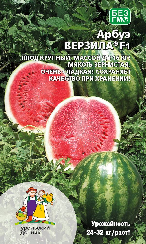 Масса до 16 кгРаннеспелый сорт. Период от всходов до первого сбора 78-90 дней. Плод широкоэллиптический, гладкий, массой 4,2-6,1 кг. Фон светло-зелёный, рисунок – тёмно-зелёные полосы. Мякоть красная, зернистая, сладкая.Сорт обладает хорошей транспортабельностью и хранением. Хорошо растёт...