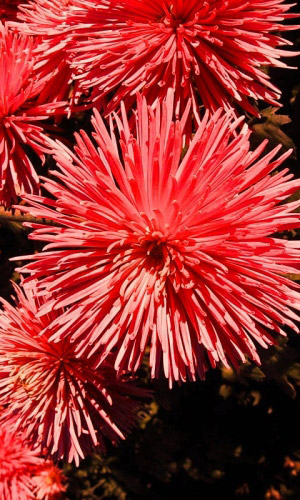 Тип-игольчатые. Кпасивое растние с крупными, до 12 см в диаметре соцветиями. Куст широкий, ветвистый, высотой 60-70 см. Соцветия крупные махровые, очень изящный, собраны из скрученых в трубочки ярких цветков. Одно растение дает до 14 стеблей для срезки.