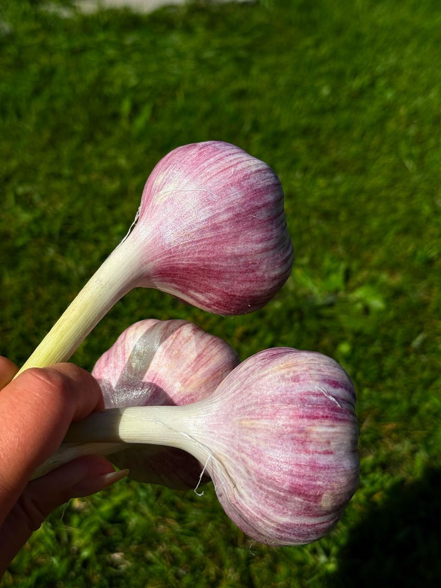 Луковица округлой формы, крупного размера, массой до 110 г. Число зубков 8-12. Сухие чешуи серовато-белого цвета с фиолетовыми прожилками. При этом кожистые чешуи окрашены более интенсивно в фиолетовый цвет. Мякоть светло-кремового оттенка, почти белая, плотная. Урожайность составляет 2,1-2,5 кг/м2. Отличается высокой лёжкостью.