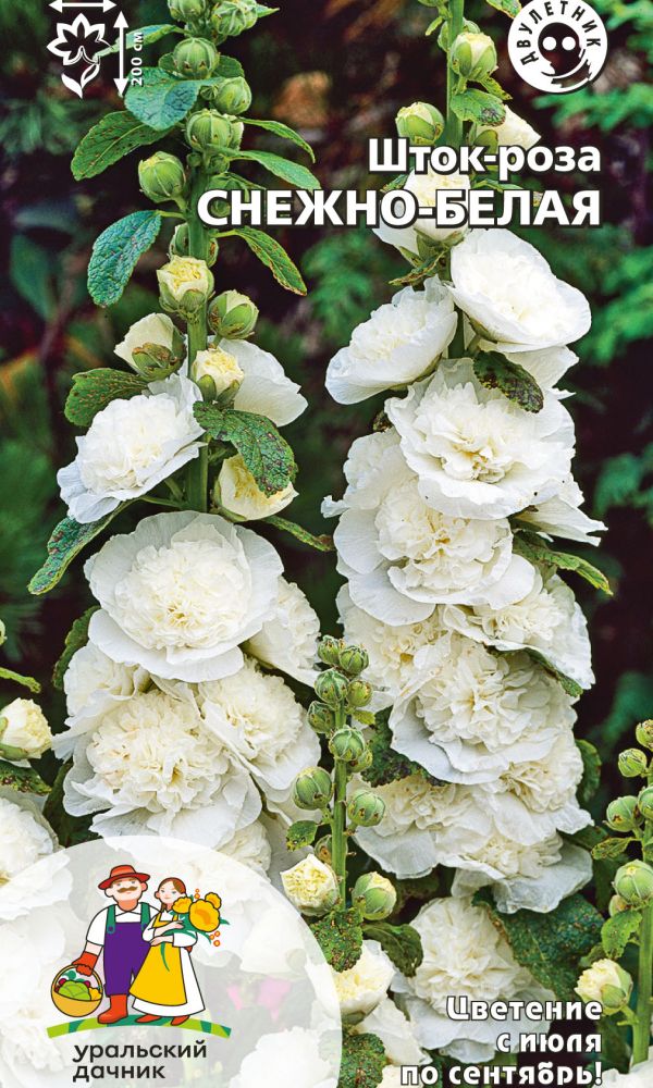 ДвулетнееКлассические садовые гиганты. Стебель мощный, ветвистый, высотой до 200 см. Крупные бархатистые полумахровые и махровые цветки белой окраски собраны в длинные кистевидные соцветия. Цветёт в июле-сентябре. Используются для небольших групп на газоне, миксбордеров, декорирования стен, заборов и на срезку. Срезанные стебли в стадии бутонов распускаются в воде.