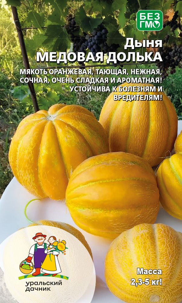 Cорт среднепоздний, 75-80 дней, дружно созревающий, урожайный. Плоды ребристые, привлекательного внешнего вида – ярко-жёлтые с эффектными зеленовато-жёлтыми полосами, скрытыми поверхностной сеткой. Мякоть светло-жёлтая, среднеплотная, сочная с содержанием сухих...