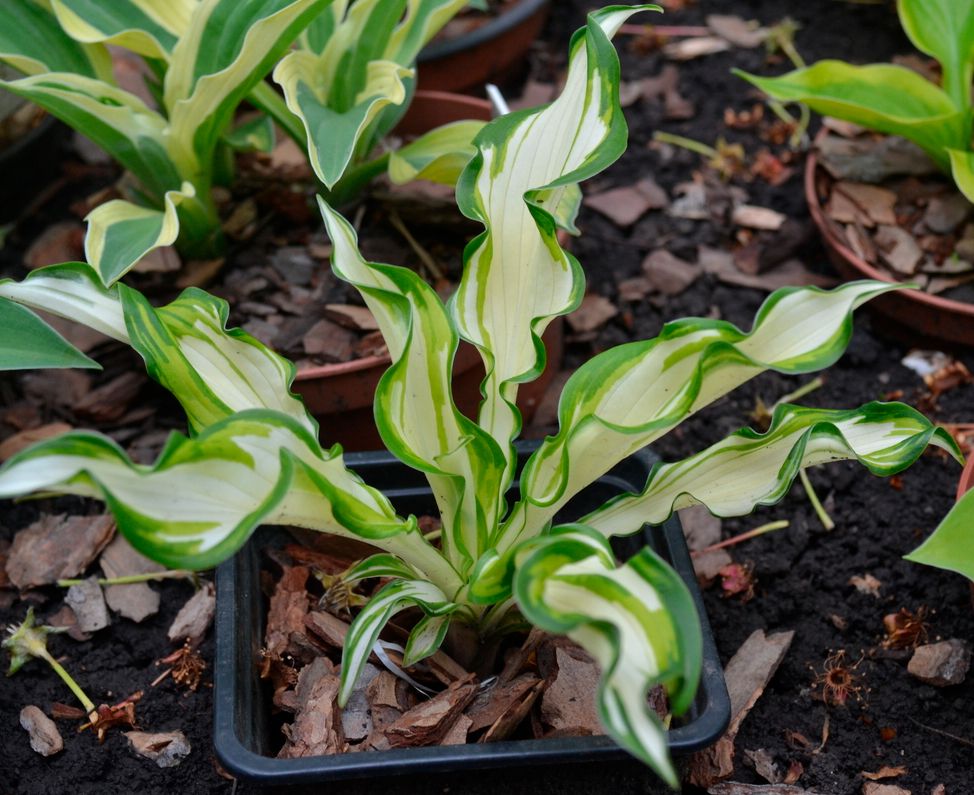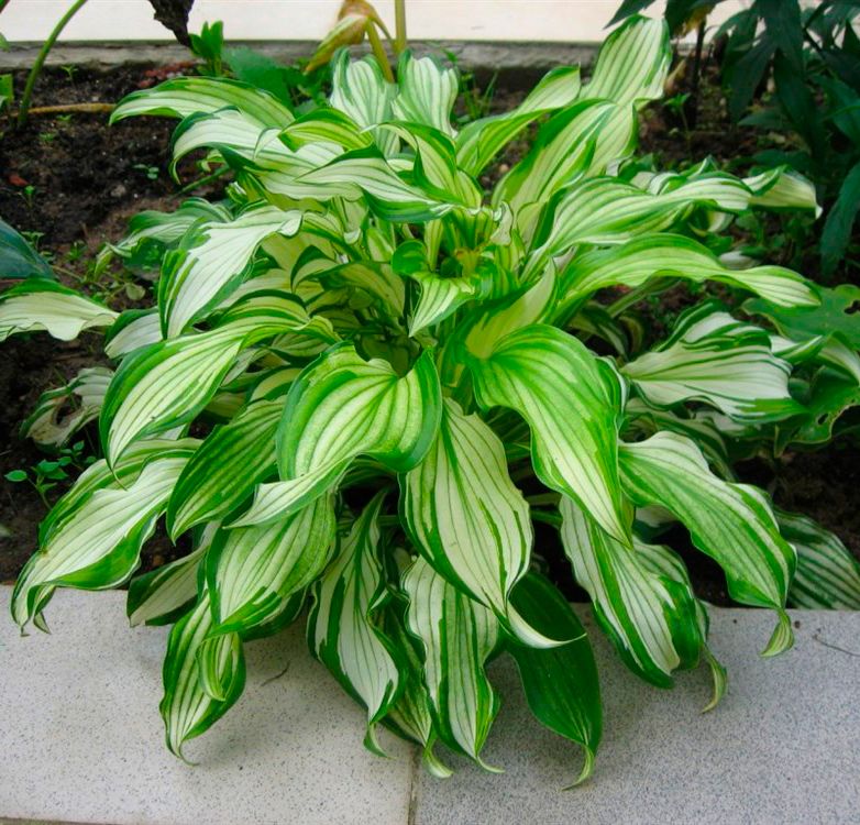 Листья этой маленькой, но очень красивой хосты заметно закручиваются, на их зеленовато-белом фоне отчетливо видны яркие зелёные полоски, как будто их нарисовали. При этом ближе к концу лета, когда период цветения на исходе, зелёный цвет в листьях занимает больше места. Хоста Киви Сперминт украсит дорожки и бордюры дачного участка, поможет Вам при составлении оригинальных цветочных композиций в контейнере. Киви Сперминт хорошо растёт даже в затенённых участках.