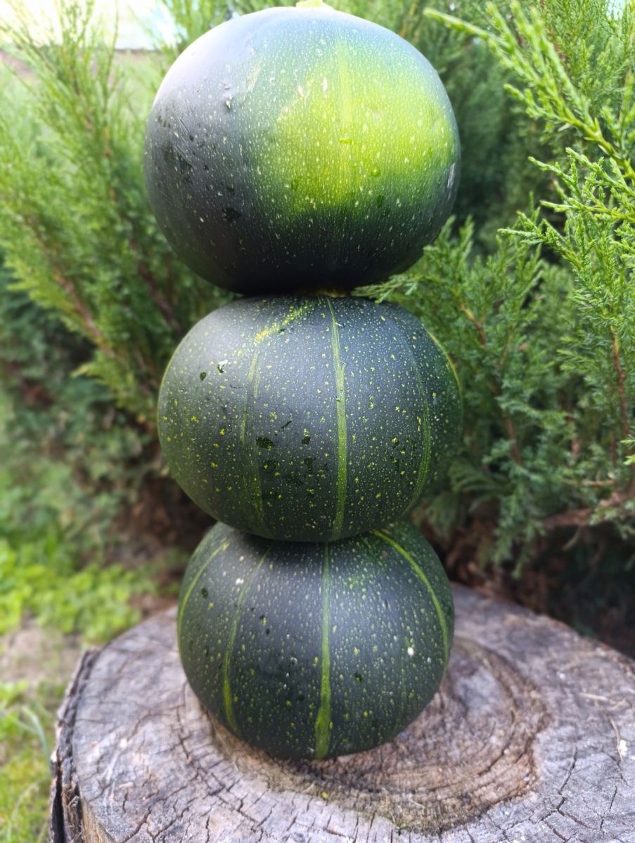 Раннеспелый высокоурожайный, кустовой сорт. Плоды округлые (по форме напоминающие горшочек для запекания), тёмно-зелёные, массой до 500 г. Мякоть хрустящая, плотная, нежная, очень сочная.