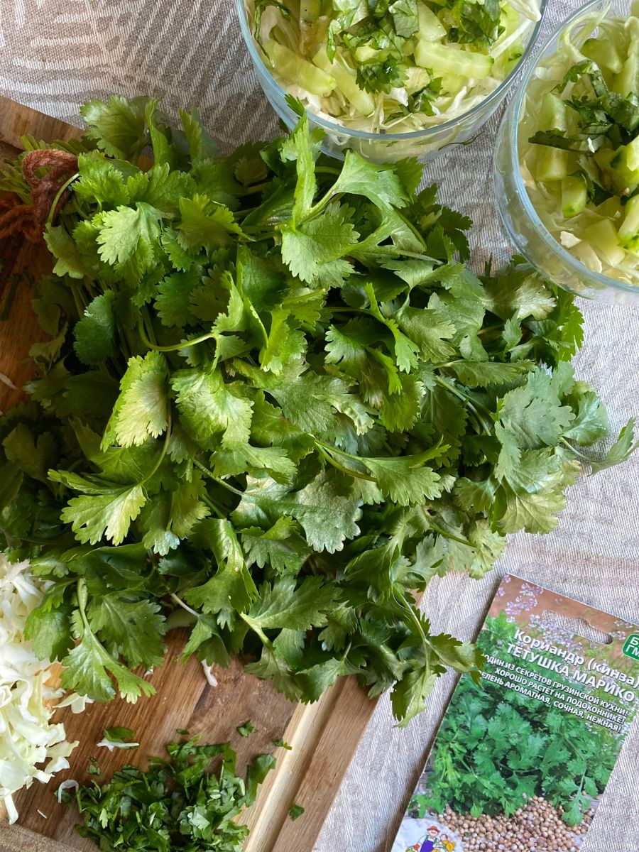 Рекомендуется для использования в качестве салатной зелени: листья, молодые стебли и пряной приправы: сушеные листья, зрелые семена к мясным, рыбным, овощным блюдам особенно грузинской кухни.