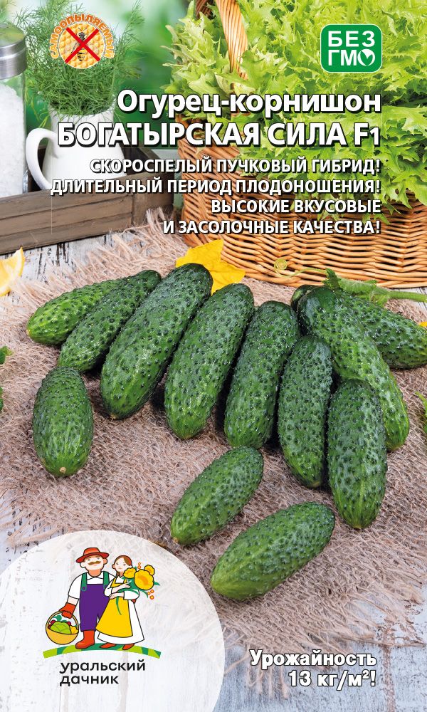Скороспелый партенокарпический пучковый корнишонный гибрид женского типа цветения для весенних теплиц, тоннелей, открытого грунта. В плодоношение вступает на 40 день после полных всходов. Хорошее отрастание боковых побегов обеспечивает длительный период активного плодоношения.
