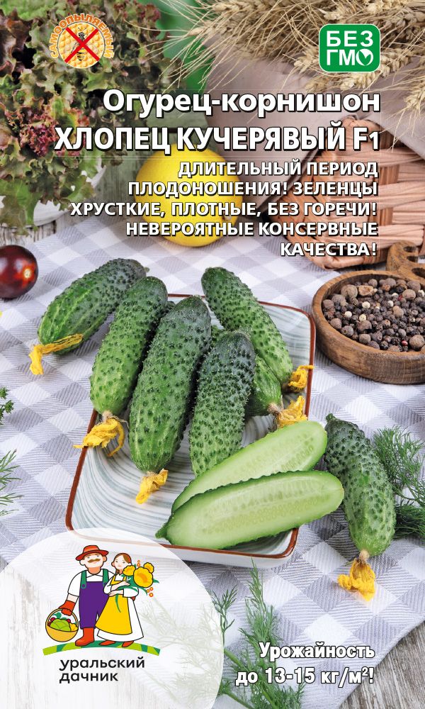 Высокоурожайный партенокарпический, раннеспелый гибрид Уральской селекции для выращивания в открытом и защищённом грунте. От появления всходов до сбора первого урожая проходит 40-45 дней. Плоды тёмно-зелёные, мелкобугорчатые, плотные, массой 70-80 г, длиной 7-9 см, хрустящие, без горечи, с отличным вкусом. При засолке и мариновании плоды остаются плотными и упругими. Гибрид устойчив к кладоспориозу. Урожайность в открытом грунте – 7,9 кг/м2.