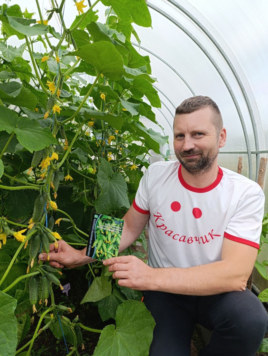 Партенокарпический высокоурожайный скороспелый пучковый корнишонный гибрид. Надёжный гибрид – благодаря комплексной устойчивости к болезням и неблагоприятным условиям среды даёт стабильно высокий урожай в любых условиях. Хорошее отрастание боковых побегов в сочетании со II типом саморегулирования ветвления обеспечивает длительное активное плодоношение до первых морозов. В узлах формируется 3-6 и более завязей. Зеленцы красивой ярко-зелёной окраски, белошипые, с плотной хрустящей мякотью, с часто-средним опушением, длиной 9-12 см.