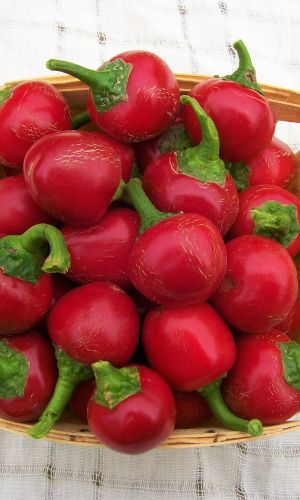 Очень красивый ранний сорт с плодами, похожими на маленькие помидорчики. Куст компактный, высотой до 50 см при выращивании на окне или балконе, и до 80 см при выращивании в открытом грунте и парниках. Сорт практически не поражается болезнями, поэтому в зимних садах или на окне может расти до 2-х лет. Плоды типа Черри, диаметром около 3-4 см, ярко-красного цвета. Используются в свежем, сушеном и консервированном виде. Острота перца зависит от освещенности, чем выше, тем более жгучими становятся плоды.