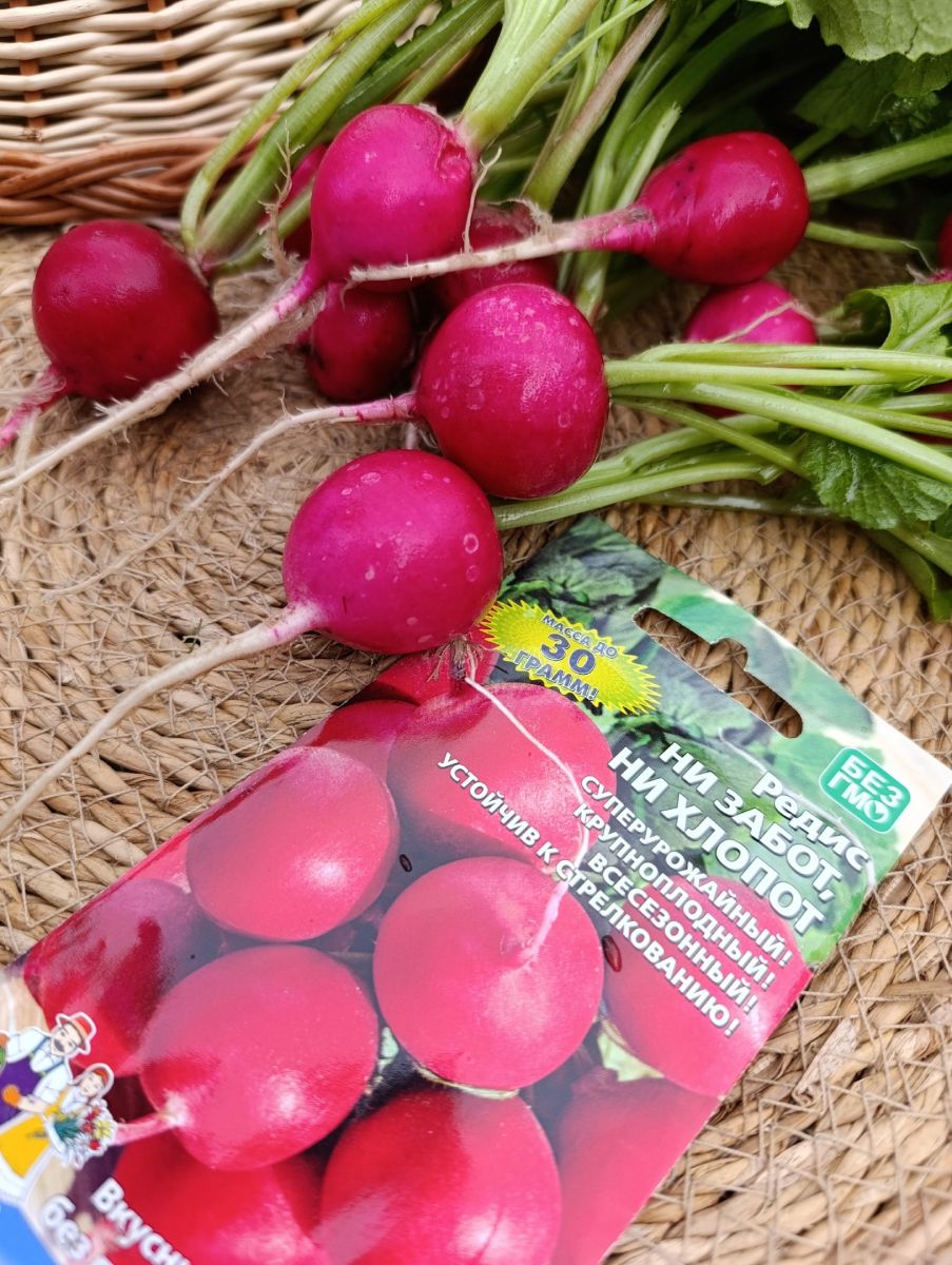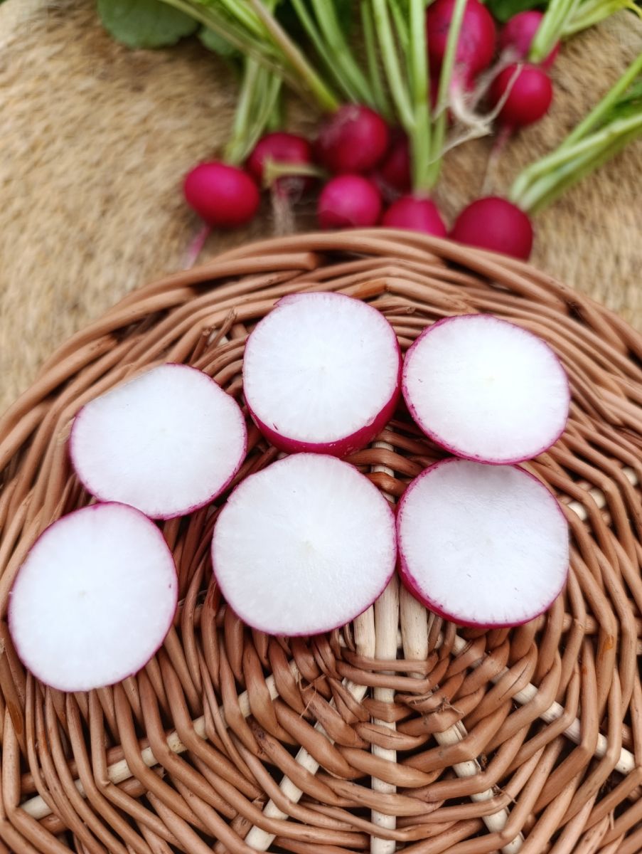 Высокоурожайный сорт для открытого и защищённого грунта. Корнеплоды округлые, насыщенно-красные, массой 25-30 г. Мякоть белая, плотная, очень сочная, приятного слабоострого вкуса.