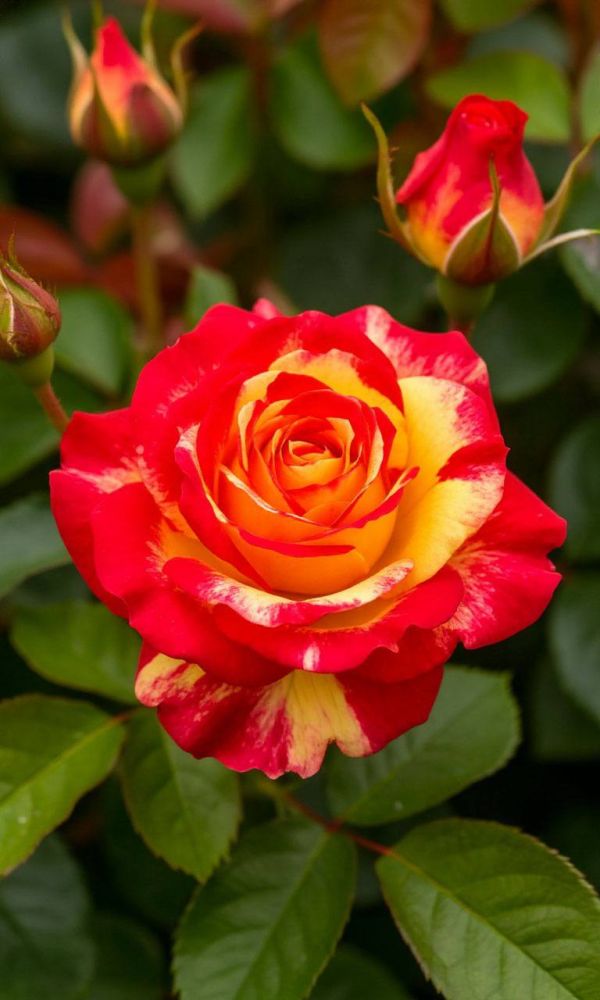 Открытый грунтРоза Китайский дракон – яркий и компактный сорт флорибунды с выразительной двухцветной окраской. Отличается стабильным цветением и высокой устойчивостью к погодным условиям, что делает его подходящим для небольших садов, бордюров и декоративных посадок.