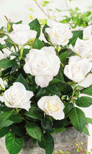 Цветок до 12 смЭтот шикарный и изысканный сорт точно не оставит никого равнодушным. Шарм этой розы привлекает своей невесомостью и воздушностью, а также выраженным ароматом, который сводит с ума. Красивый, крупный, плотный бутон до 12 см, медленно раскрывается, устойчив к дождям, холоду и болезням. Цвет розы ближе к оттенку топлёного молока, но благодаря плотности серединных лепестков бутон принимает цветовые окраски белого шоколада. У стебля мало шипов, насыщенная зелёная листва, высота 60-80 см. Изумительной красоты белоснежный букет, символизирующий чистоту и искренность, принято дарить на свадьбах и торжественных мероприятиях.