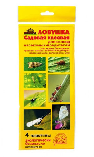 Ловушка садовая клеевая для отлова насекомых-вредителей (тли, мошки, белокрылки, грибного комара, бабочки-плодожорки, яблонной моли, долгоносика, мух). Используется для защиты овощей, фруктовых деревьев, цветов, как в парниках, так и на открытых участках. Привлекает и уничтожает садовых вредителей, таких как тля, мошка, белокрылка, плодожорка, а также для отлова мух и других мелких насекомых. Жёлтый цвет ловушки отражает свет на длине волны, которая привлекает насекомых. В клеевом составе ловушки не используются яды, она абсолютно безопасна для человека и домашних животных.