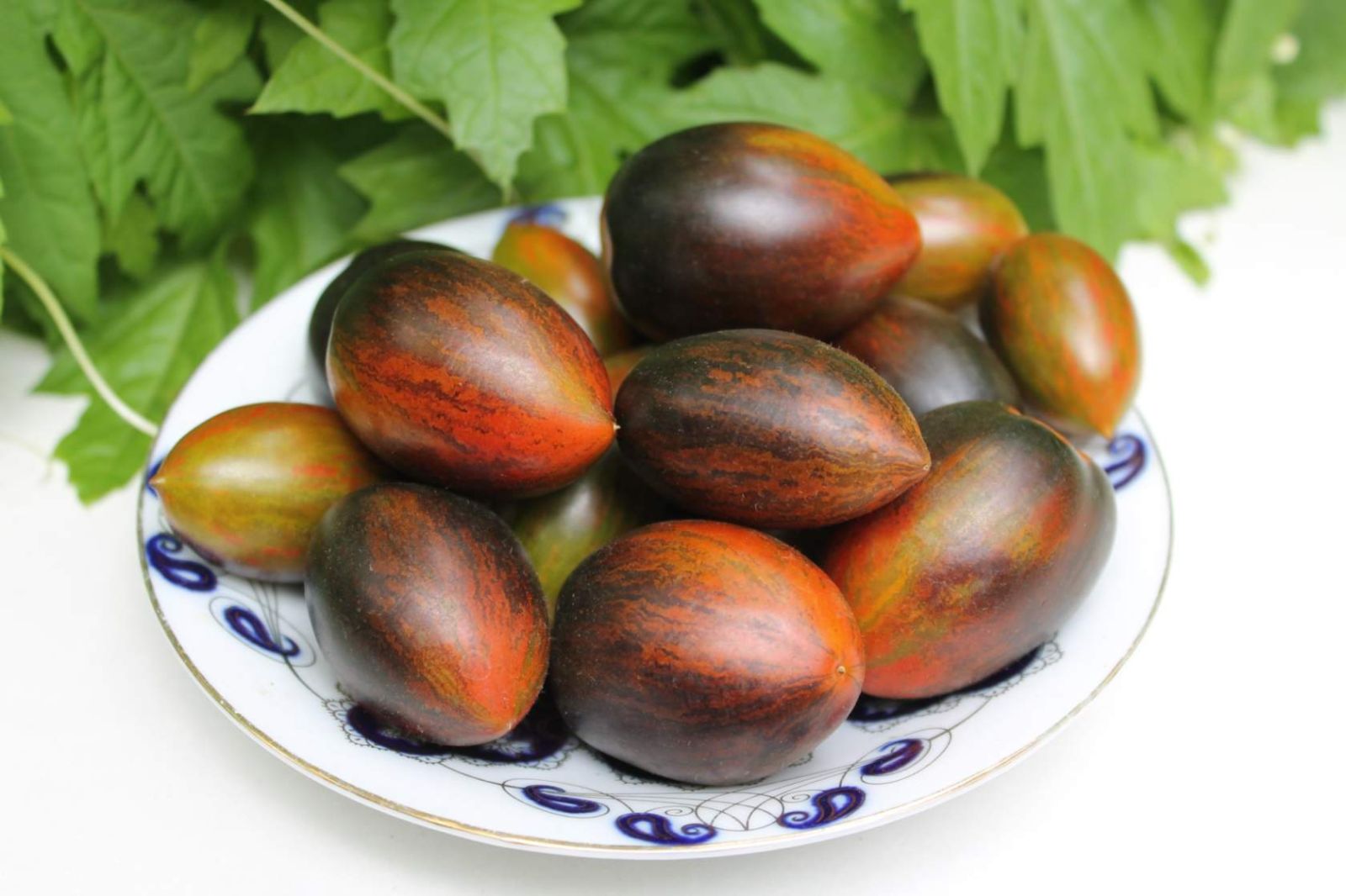 Среднеспелый индетерминантный сорт с оригинальной полосатой окраской плодов. Отличается стабильной урожайностью, хорошей завязываемостью кистей и устойчивостью к стрессовым условиям. Срок созревания составляет 110-115 дней от всходов. Кусты в теплице достигают до 2 метров, требуют подвязки и формирования. На кистях созревает 6-8 плодов, массой 55-85 г каждый.