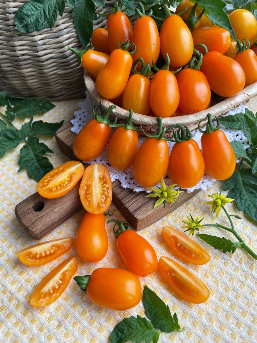 КомнатноеСорт раннеспелый (100-105 суток), детерминантный, ампельный, для теплиц, временных укрытий и открытого грунта. Высота в теплице 1,0-1,2 м, в открытом грунте 0,6-0,8 м. Можно выращивать в кашпо от 7 л. Куст среднеоблиственный. Тонкие, но прочные боковые побеги превышают по длине центральный стебель, хорошо ветвятся, под нагрузкой округло-овальных плодов ярко-оранжевого цвета красиво свисают с подвесных кашпо, вертикальных гряд. Кисти сложные, плотные, формируются почти в каждом междоузлии. Масса товарного плода 8-12 г. Мякоть плотная, сочная, очень сладкая, с фруктовым послевкусием. Плоды не трескаются и долго не осыпаются.