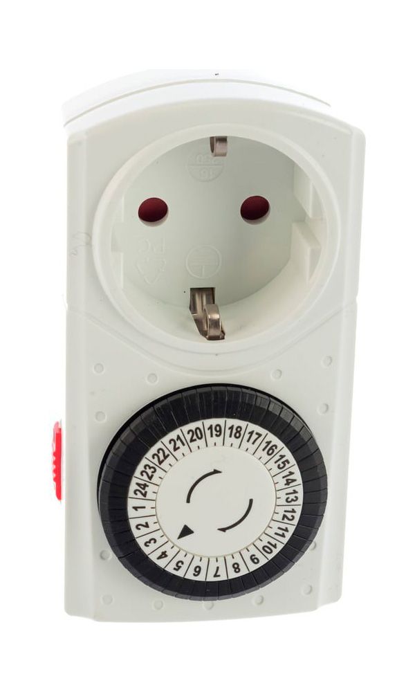 Розетка с таймером даёт возможность автоматически включать и выключать подсветку для растений, а также бытовые электроприборы когда вас нет дома. Работу устройства настраивают с помощью механического диска, шаг - 30 минут.Нужно включить подсветку с 8 до 10 утра и с 16 до 19...