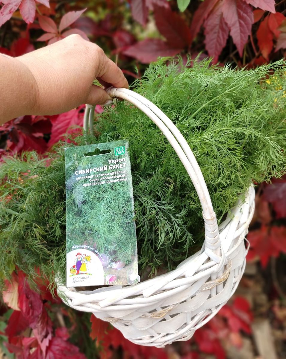 Среднеспелый, кустовой, компактный, густооблиственный, суперурожайный сорт. Отличительная особенность в том, что он пригоден для выращивания в горшках и очень сильная ароматичность. Лист крупный, зелёный, со слабым восковым налетом, напоминает морозные рисунки на стекле в лютые морозы! Растения очень холодостойкие, хорошо переносят кратковременные весенние заморозки. Масса одного растения при уборке на зелень 30-50 г, при уборке на специи 70-100 г.