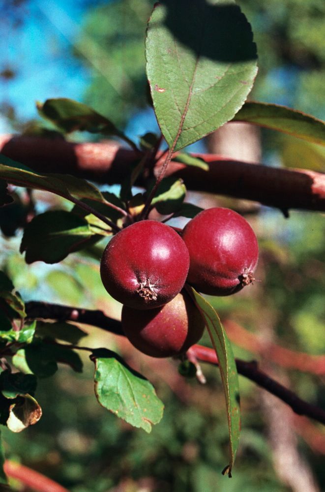 Яблоки можно употреблять в свежем виде. Они имеют фиолетово-пурпурный цвет, размер не более 2 см и слегка округлую форму. Кожура покрыта восковым налётом, а мякоть имеет розово-пурпурный оттенок. Вкус яблок терпкий, как у всех диких лесных яблок. Из них можно готовить джемы, варенья и компоты.